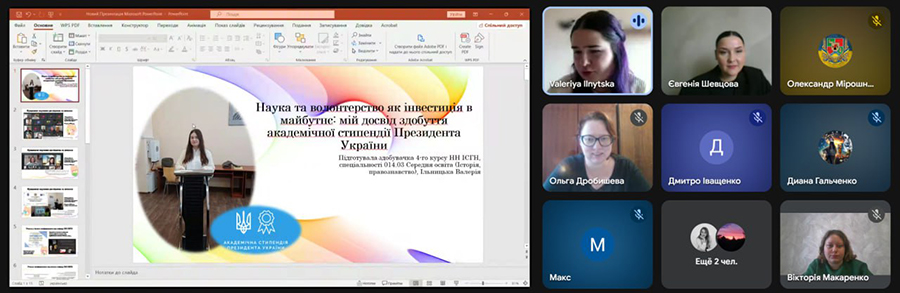 Валерія Ільницька поділилася власним досвідом і розповіла про свій шлях у науці. Вона наголосила на викликах, з якими довелося зіткнутися, та шляхах їх подолання. Її виступ став яскравим прикладом того, що наполеглива робота й активна участь у дослідницькій діяльності можуть привести до значних результатів – серед яких отримання академічної стипендії Президента України.