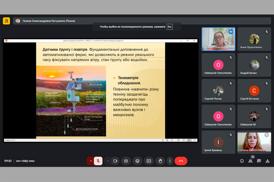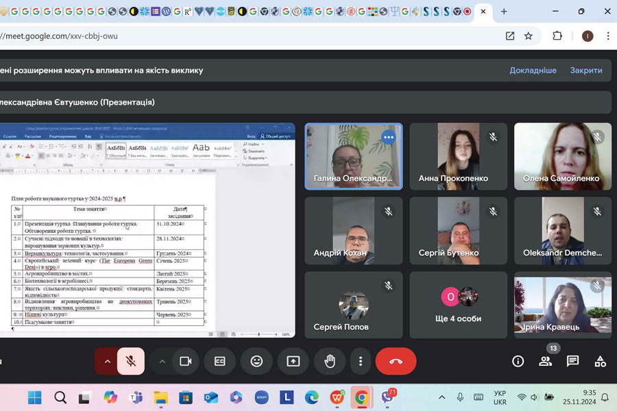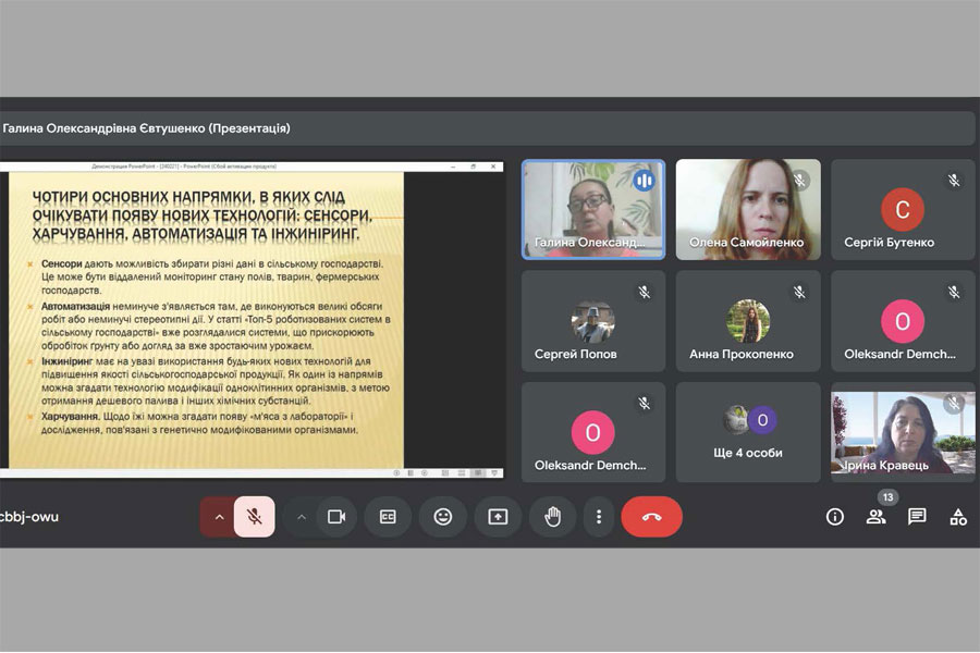 У засіданні взяли участь здобувачі освіти, що навчаються за освітньо-професійною програмою Агрономія та викладачі кафедри. На засіданні обговорювалися питання сучасних технологій, що використовуються в агрономічних дослідженнях та практичній діяльності агрономів. Приділили увагу використанню СМАРТ та ГІС технологій, автоматизації виробництва, залученню їх до використання в точному землеробстві. Жваве обговорення викликали питання використання технологій вертикального землеробства в міському сільському господарстві.