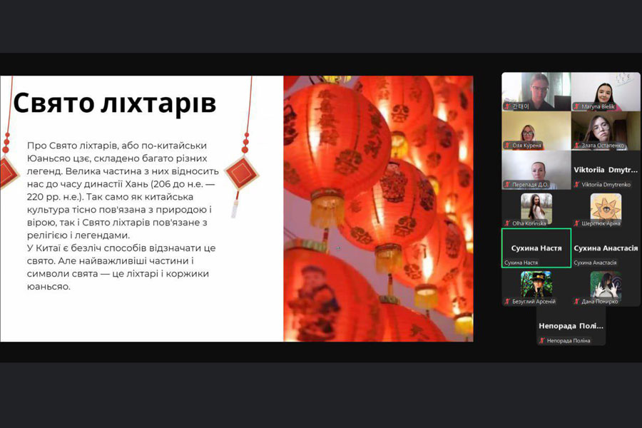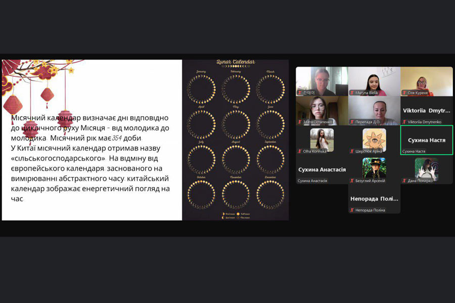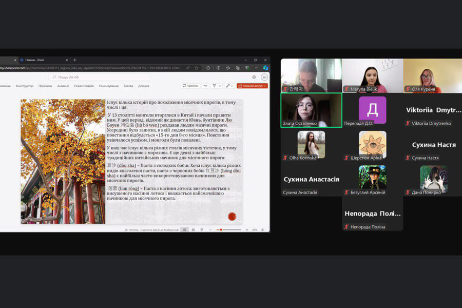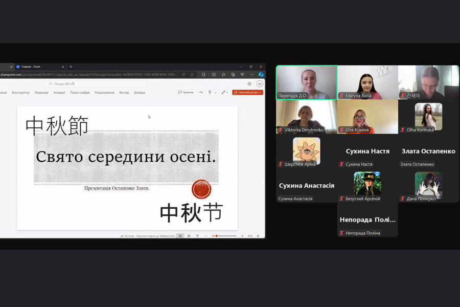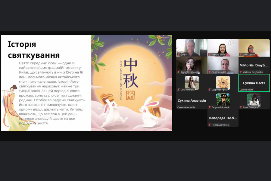 На засіданні учасники обговорили широкий спектр тем, пов'язаних з культурою Китаю. Під час зустрічі, учасники представили свої доповіді та поділилися враженнями про традиції й звичаї китайців під час святкування. Так, Остапенко Злата, здобувачка освіти першого курсу, розповіла про особливості святкування 秋节. Сухіна Анастасія, здобувачка освіти третього курсу, доповнила відомості про традиції й історію цього свята, а також ознайомила присутніх із традиційним китайським Святом ліхтарів (灯节). Недогибченко Софія, здобувачка освіти другого курсу, розповіла про аналог китайського свята 秋节 у Кореї. Всі доповіді супроводжувалися яскравими презентаціями і відеорядом.