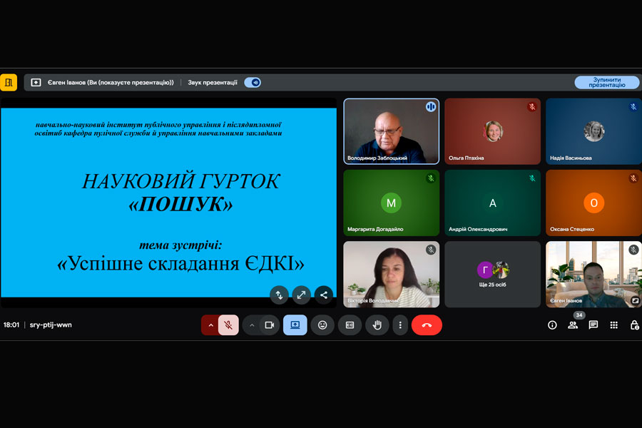 У засідання взяли участь здобувачі освіти ІІ-го курсу спеціальності Публічне управління та адміністрування й викладачі кафедри. Засідання було присвячене питанням підготовки та успішного складання єдиного державного кваліфікаційного іспиту (ЄДКІ).