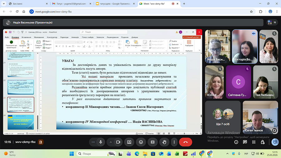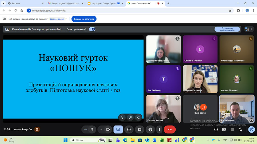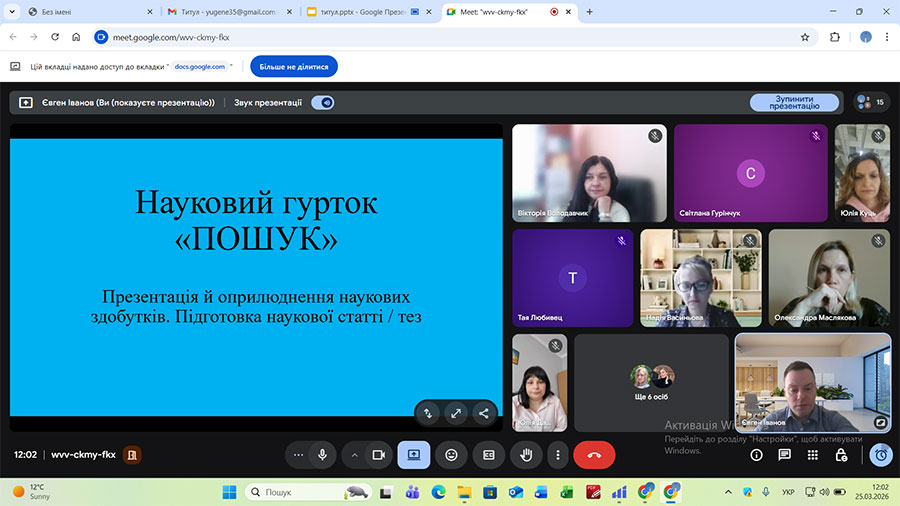Під час засідання обговорено актуальні питання наукової діяльності здобувачів освіти. Учасники ознайомилися з особливостями підготовки тез, наукових статей і доповідей, а також вимогами до їх написання. Окрему увагу приділено формуванню безбар’єрного наукового середовища як важливої складової сучасної академічної культури.