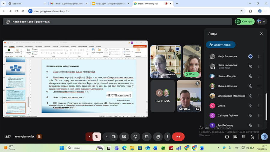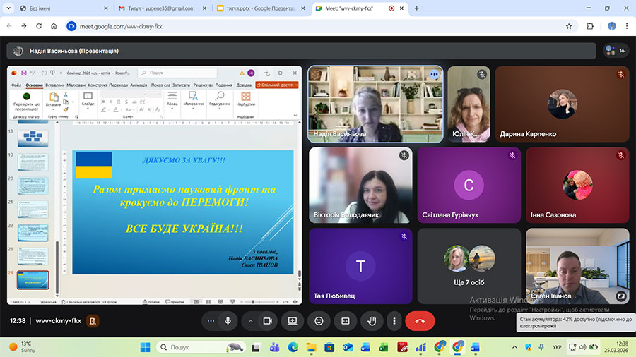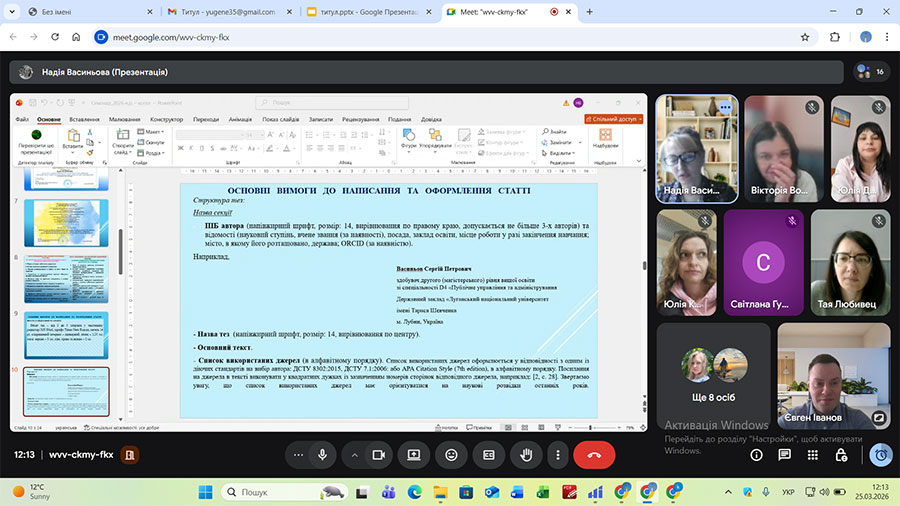 Під час розгляду другого питання викладачка кафедри, кандидатка педагогічних наук, доцентка Васиньова Надія Сергіївна висвітлила ключові аспекти формування безбар’єрного наукового середовища. Зокрема, акцентовано увагу на забезпеченні рівних можливостей участі в дослідженнях для різних груп здобувачів освіти, розвитку відкритої науки, використанні цифрових інструментів для розширення доступу до наукових ресурсів, а також ролі університетів у популяризації науки та взаємодії з громадами.