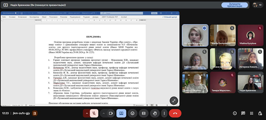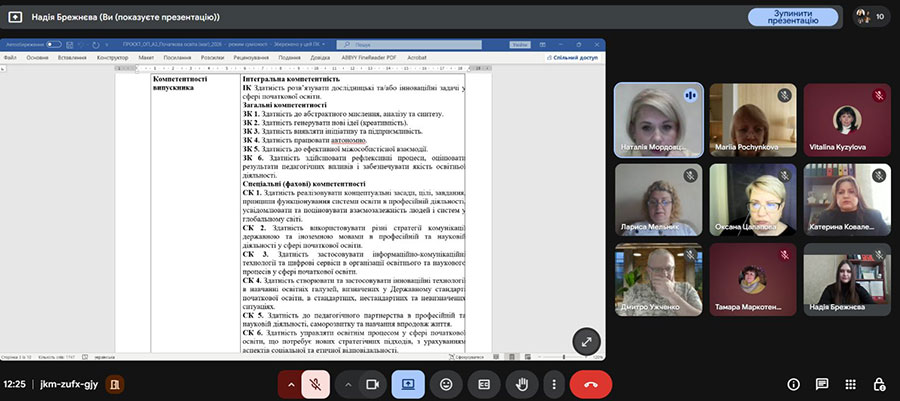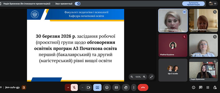 30 березня на кафедрі початкової освіти факультету педагогіки і психології відбулося засідання проєктних (робочих) груп, присвячене внесенню змін до освітніх програм спеціальності А3 «Початкова освіта» першого (бакалаврського) та другого (магістерського) рівнів вищої освіти.