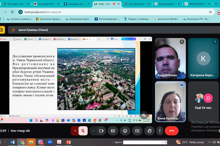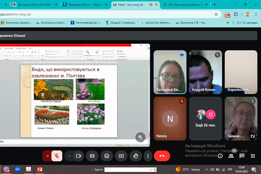 Низка доповідей була присвячена садово-парковим культурам, їх різноманіттю та реакції на зміни клімату. Зокрема, доповідь Березенко К.С., викладачки кафедри садово-паркового гомподарства та екології, була про різноманіття губоцвітних рослин в адаптивному озелененні.