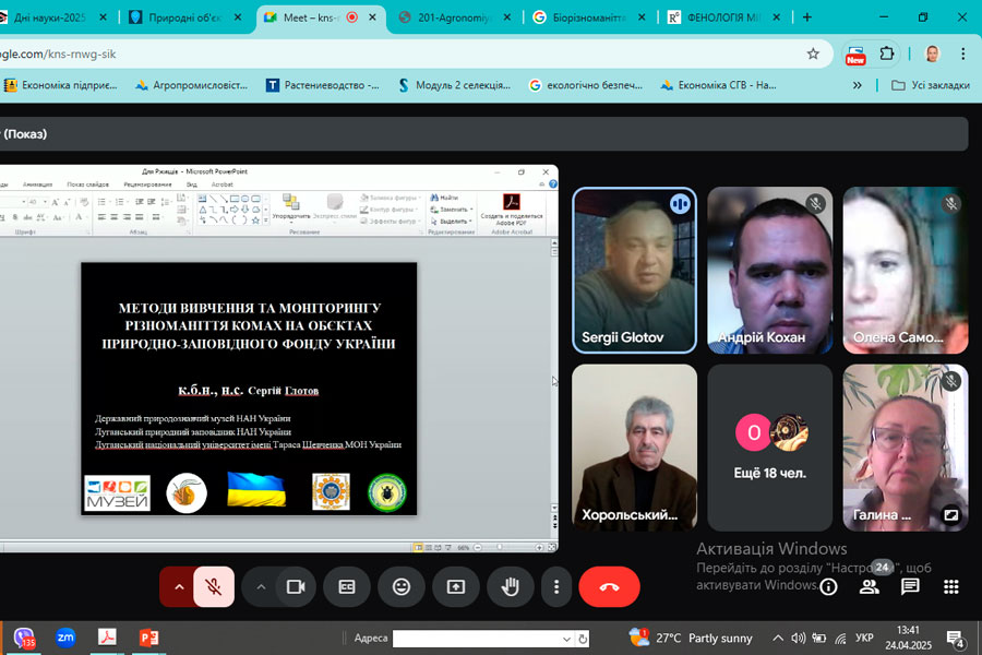 Глотов С. В., викладач кафедри садово-паркового господарства та екології, розповів про методи ентомологічних досліджень на територіях природно-заповідного фонду України.