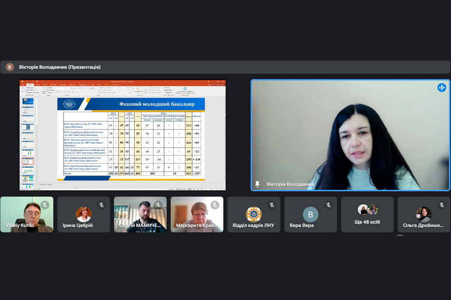 Першим питанням порядку денного було розглянуто результати вступної кампанії 2024 р. Заслухавши й обговоривши доповідь відповідального секретаря приймальної комісії Вікторії Володавчик, вчена рада відзначила, що університет та його структурні підрозділи на належному рівні забезпечили організацію прийому та зарахування на всі освітні (освітньо-професійні, наукові) ступені (кваліфікований робітник, фаховий молодший бакалавр, бакалавр, магістр, доктор філософії, доктор наук) та форми навчання у 2024 році. Разом з тим, університет не оминула загальноукраїнська тенденція щодо скорочення кількості вступників – обсяг прийому до університету з урахуванням усіх відокремлених підрозділів та освітніх ступенів і рівнів порівняно з минулим роком зменшився на 209 осіб. Питання викликало жваве обговорення, у якому взяли участь голова комісії вченої ради з питань соціально-гуманітарної роботи та зв’язків з громадськістю Володимир Мороз, директори навчально-наукових інститутів Вікторія Дмитренко, Наталія Мацай, Марина Єпіхіна, Едуард Потапенко, Антон Бадер, Олександр Дубовой, директорка Лисичанського педагогічного фахового коледжу Оксана Бейс, директор Регіонального центру професійної освіти Микола Курило, представниця Долинського консультаційного центру Віра Пушко і професорка кафедри музичного мистецтва та хореографії Ірина Цебрій, які звернули увагу на причини окремих проблем в ході вступної кампанії, а також запропонували шляхи їх вирішення.