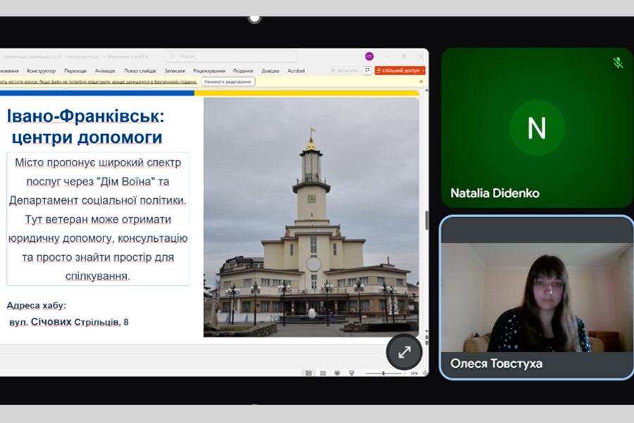 Залікова робота слухачок складалася з двох частин: доповіді на тему «Ветерани війни як вразлива категорія клієнтів» та презентації проєкту «Ветерани як агенти соціальних змін».