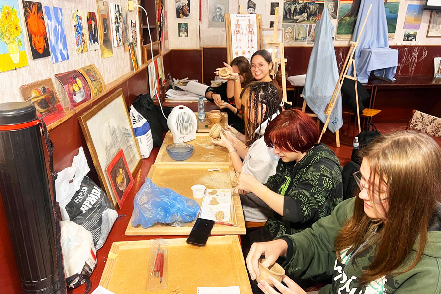 Кожне заняття проходить у теплій, творчій та натхненній атмосфері. Глина в руках студентів перетворюється на засіб самовираження, на спосіб відчути зв’язок між минулим і сучасністю. Викладачі підтримують цей процес, допомагаючи зрозуміти, що мистецтво — це не лише про форму, а й про історію, культуру та пам’ять поколінь.