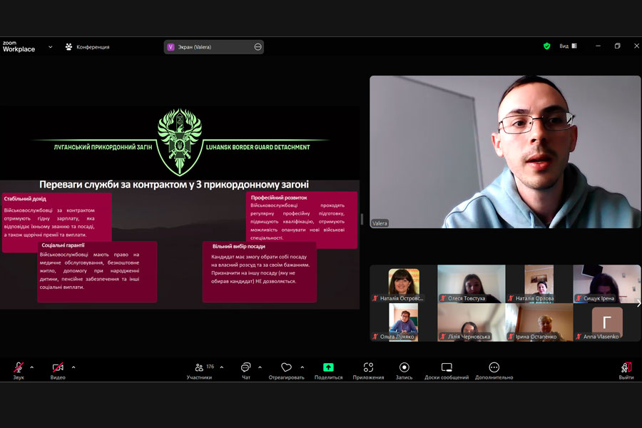 Представник 3 прикордонного загону імені Героя України полковника Євгенія Пікуса ознайомив учасників з проблемами, які виникли у Луганському прикордонному загоні під час вторгнення агресора; з героїчними подвигами військовослужбовців під час відбиття ворожих атак; розкрив переваги служби за контрактом; запросив приєднатися до загону та пройти військову службу за контрактом для захисту та оборони нашої країни.
