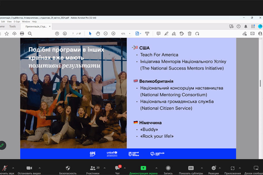 «СтудМентор» — це програма для українських студентів, які готові підтримати школярів з прифронтових регіонів та показати їм, що навчання — це класно. Все це — через підхід академічного менторингу, де студенти (ментори) передають знання та досвід школярам (менті).