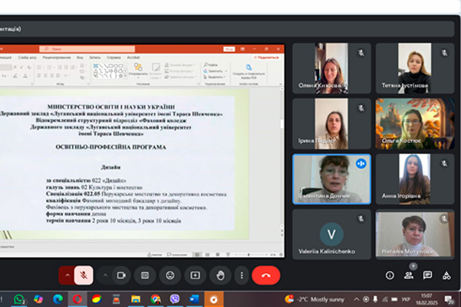 Задля вдосконалення і покращення якості освітньо-професійної програми «Дизайн (перукарське мистецтво та декоративна косметика)» та щодо специфіки процесу зміни шифрів, назви спеціальностей та ОПП відповідно до Постанови КабМіну №1021 «Про внесення змін до переліку галузей знань і спеціальностей, за якими здійснюється підготовка здобувачів вищої та фахової передвищої освіти» у ВСП «Фаховий коледж ДЗ «ЛНУ імені Тараса Шевченка» відбулася онлайн-зустріч зі стейкхолдерами, випускниками, викладачами та представниками наукової спільноти.