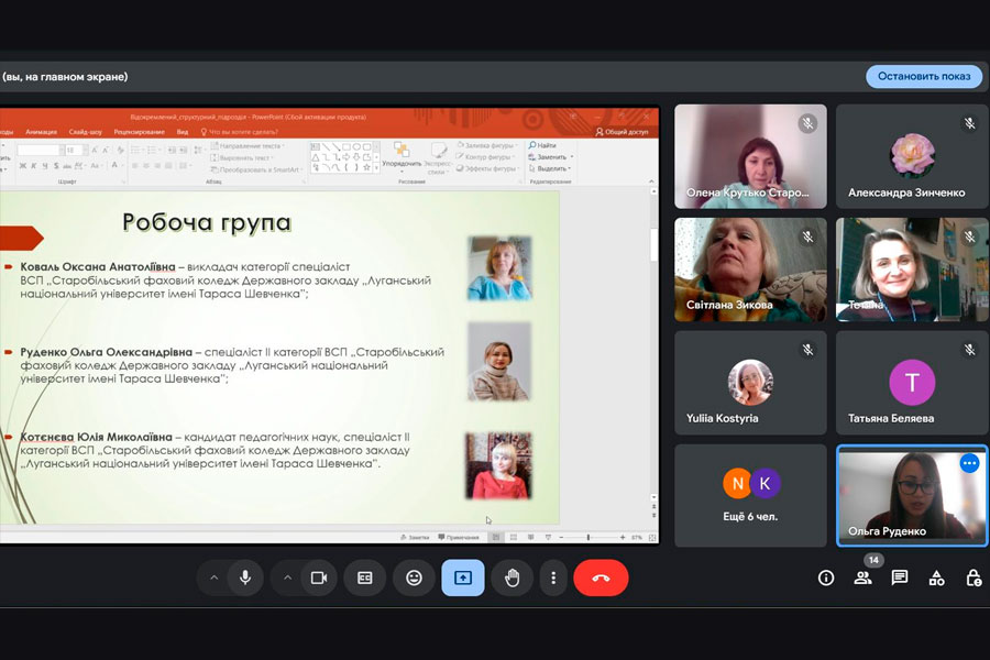З метою якісного формування структури та обговорення проєкту ОПП 19 березня у ВСП «Старобільський фаховий коледж ДЗ «ЛНУ імені Тараса Шевченка» відбулася зустріч робочої групи освітньо-професійної програми «А3 Початкова освіта. Мова та література (англійська)» зі стейкхолдерами. Тема зустрічі: «Підготовка фахових молодших бакалаврів за освітньо-професійною програмою «А3 Початкова освіта. Мова та література (англійська)». Загальні та спеціальні освітні компетентності і результати навчання».